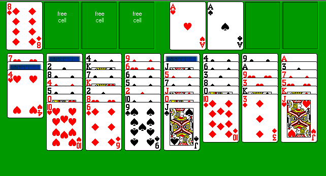 As the game proceeds, the 4 free cells (upper left) are only used as an intermediate holding place where any free card can be temporarily placed in order to access cards buried in the columns. A free cell can never contain more than one card. You can also move any free card into an empty column if any such columns exists.