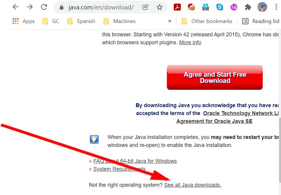 At Java.com, after you select "Download", select "See all Java downloads" - see red arrow in the picture