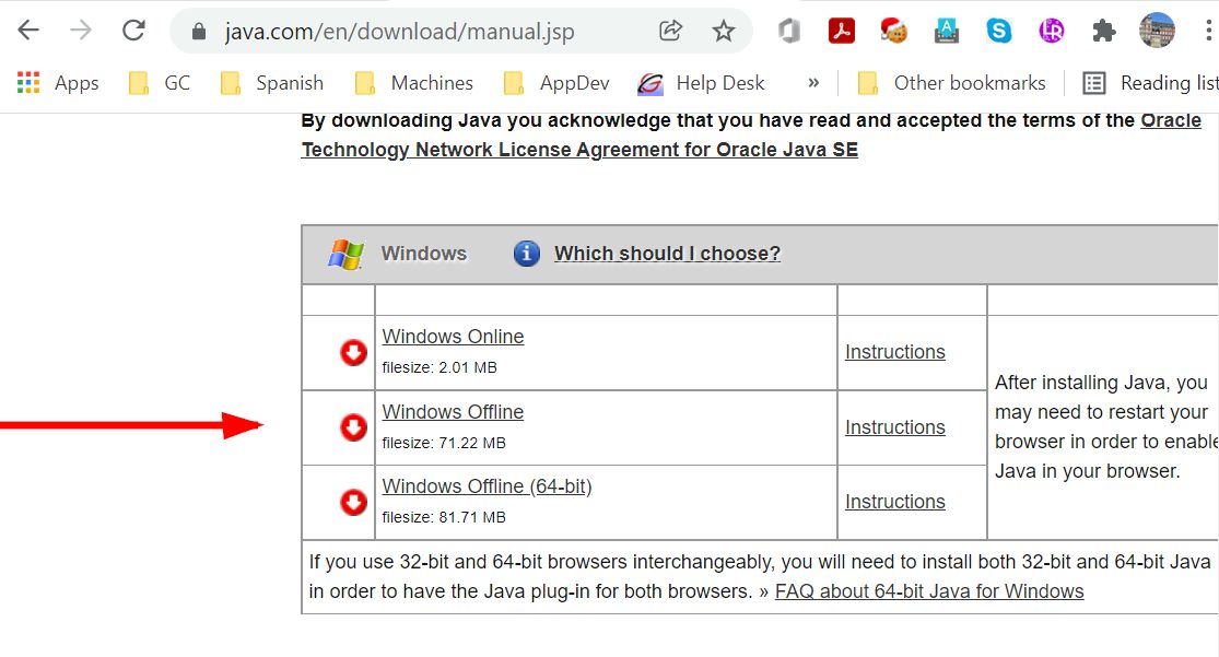 At Java.com, after you select "Download", select "See all Java downloads" - see red arrow in the picture